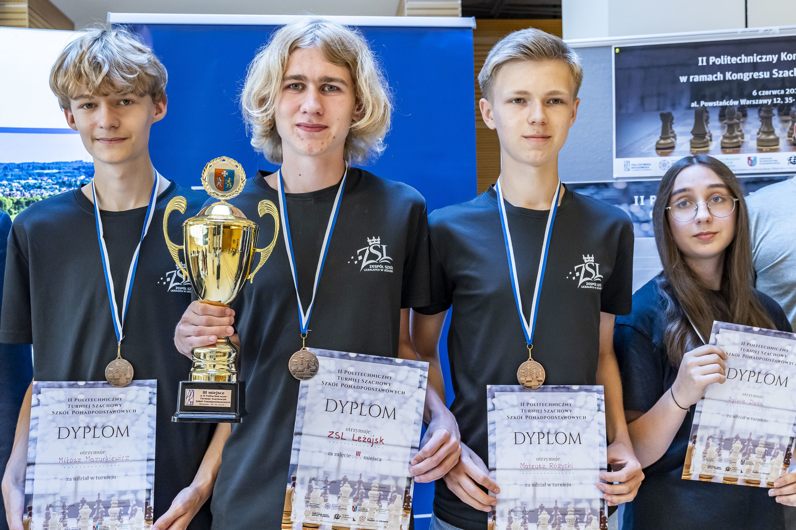 • szachownica nr 1: Karol Rzeszuto z Liceum Ogólnokształcącego Sióstr Prezentek w Rzeszowie, Piotr Buba z Zespołu Szkół Licealnych w Leżajsku, Olivier Ruciński z I Liceum Ogólnokształcącego w Rzeszowie,