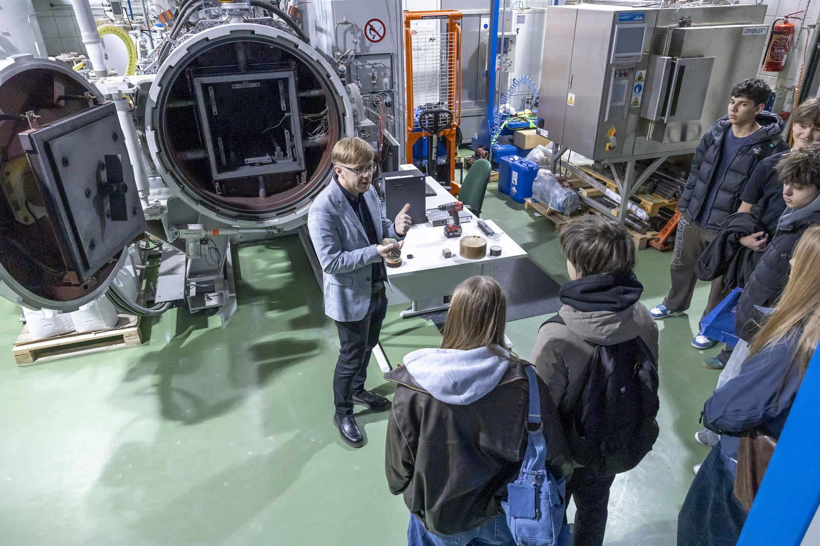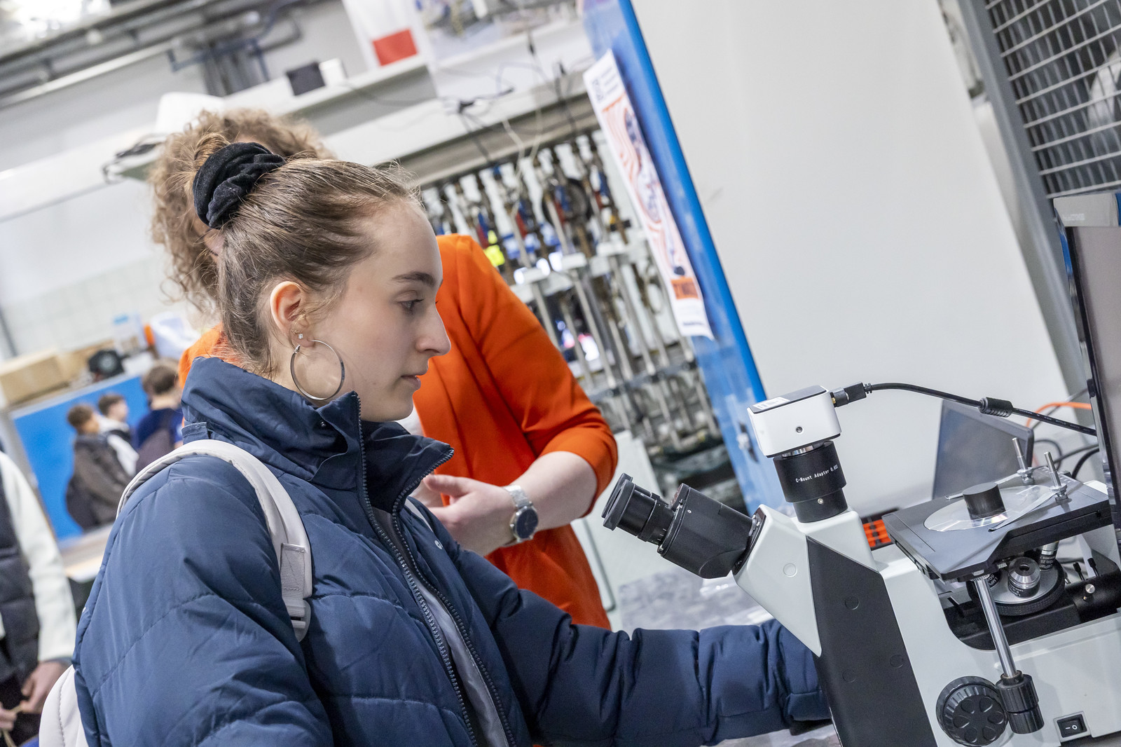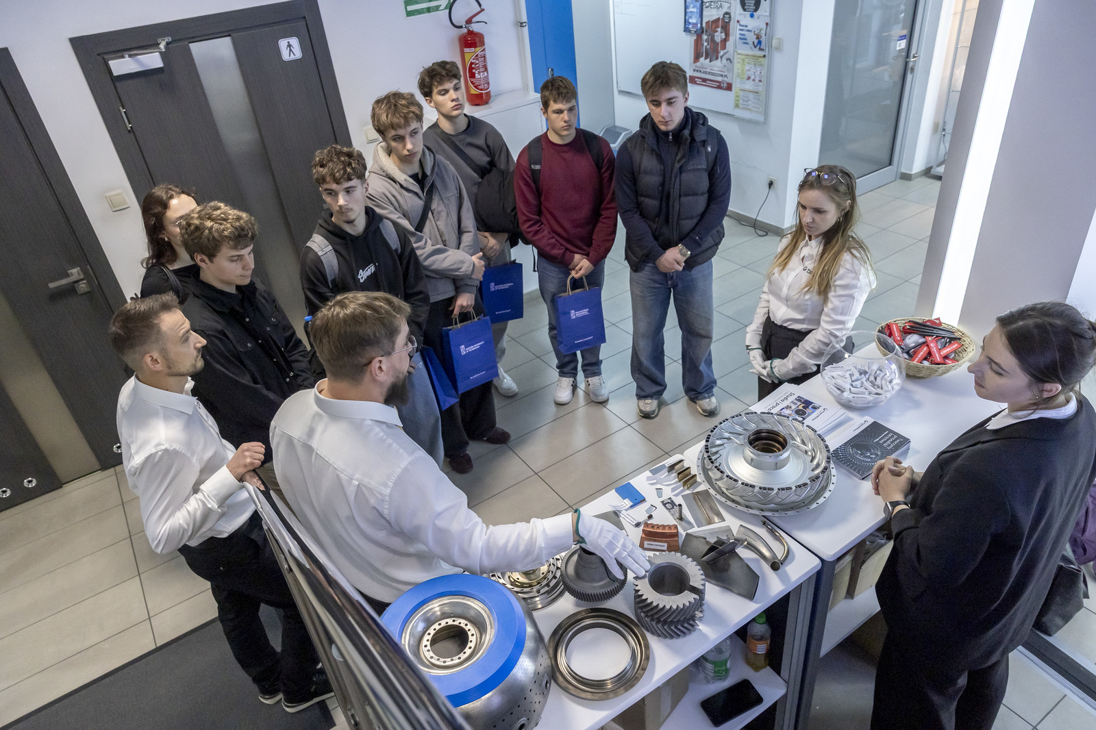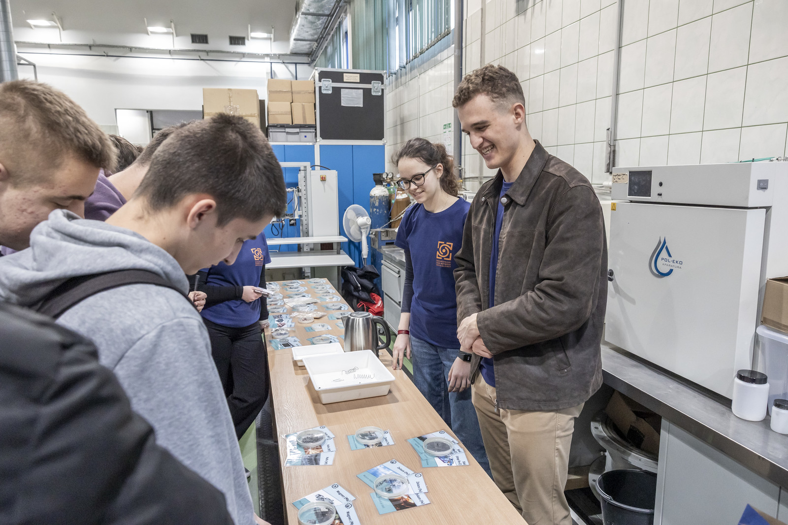 W drugiej części wydarzenia młodzież uczestniczyła w warsztatach i pokazach laboratoryjnych zorganizowanych w Katedrze Nauki o Materiałach na Wydziale Budowy Maszyn i Lotnictwa oraz Laboratorium Badań Materiałów dla Przemysłu Lotniczego. Uczestnicy mieli okazję zapoznać się z wybranymi technologiami i metodami badawczymi, takimi jak proces nawęglania, technologie laserowe, nowoczesne metody wytwarzania powłok (EB-PVD i PS-PVD), mikroskopia świetlna, a także działalnością studenckiego koła naukowego AMSA (Aerospace Materials Students’ Association).