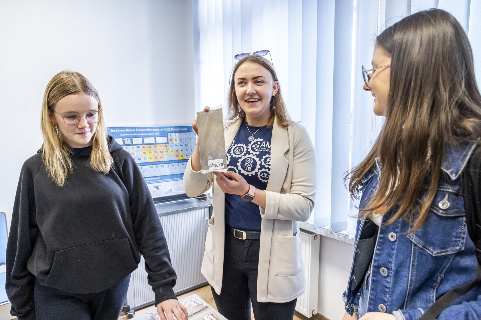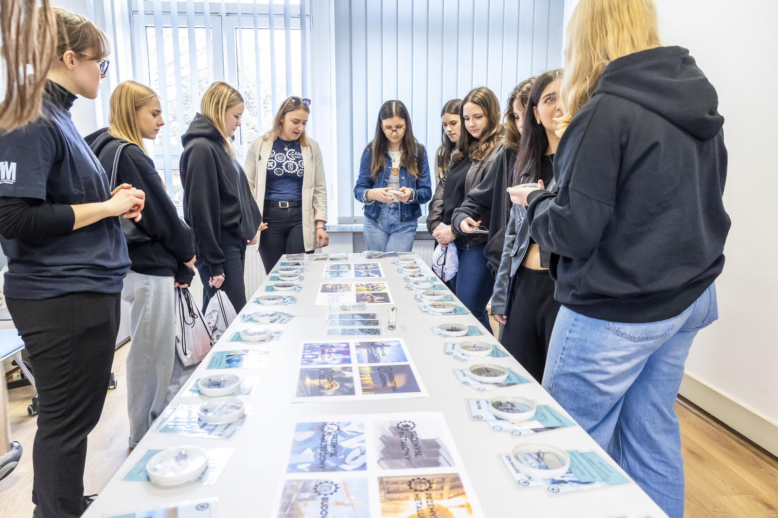 Po wykładzie młodzież udała się do Katedry Nauki o Materiałach i Laboratorium Badań Materiałów dla Przemysłu Lotniczego, gdzie wzięła udział w warsztatach nt. mikroskopii skaningowej elektronowej, natryskiwania plazmowego, fizycznego osadzania z fazy gazowej (EB-PVD), procesów elektrochemicznych oraz badań właściwości mechanicznych materiałów. Uczestnicy mogli również wysłuchać prezentacji dotyczącej działalności studenckiego koła naukowego AMSA (Aerospace Materials Students’ Association).