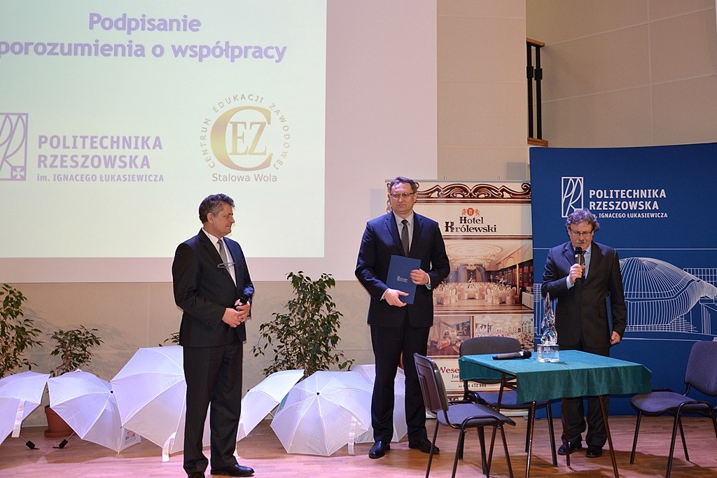 15 marca br. Politechnika Rzeszowska objęła honorowy patronat nad dwiema klasami – o profilu „technik mechatronik” i „technik pojazdów samochodowych” Centrum Edukacji Zawodowej w Stalowej Woli. Odpowiednią umowę podpisali: rektor PRz prof. dr hab. inż. Tadeusz Markowski, prorektor ds. kształcenia dr hab. inż. Grzegorz Masłowski, prof. PRz, oraz dziekan WMT dr hab. inż. Aleksander Mazurkow, prof. PRz, a także dyrektor CEZ w Stalowej Woli Piotr Żyjewski.