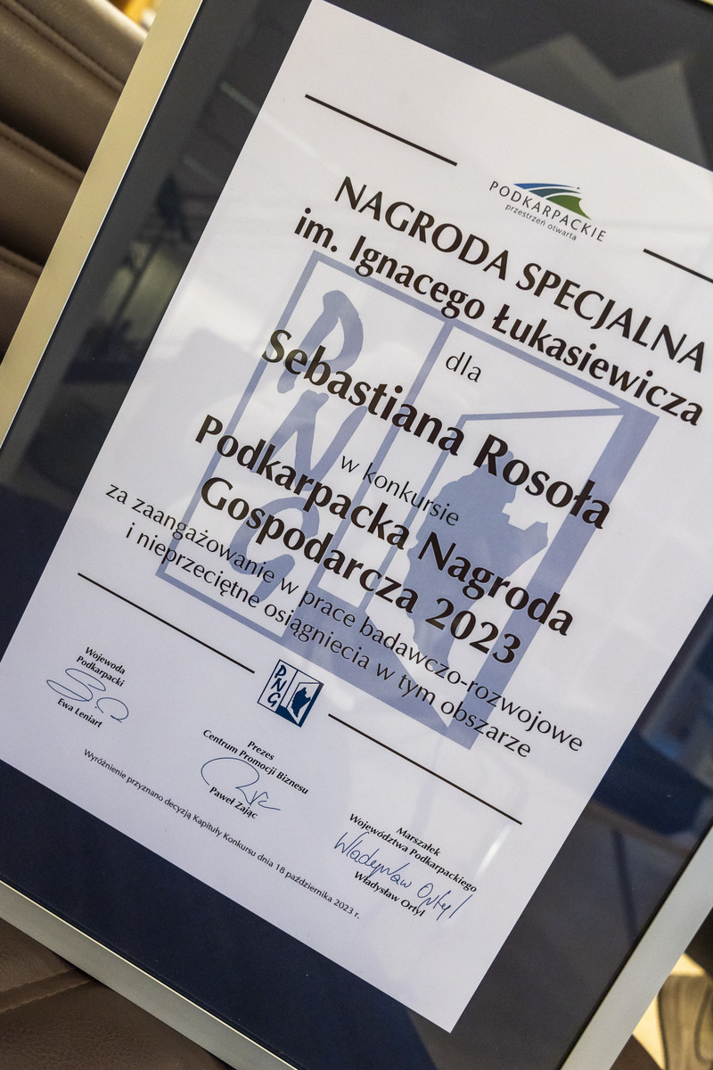 Podczas gali wręczenia Podkarpackich Nagród Gospodarczych nagrodę specjalną otrzymał lider zespołu PRz Racing Sebastian Rosół. Kapituła konkursowa doceniała studenta naszej uczelni, podkreślając jego doświadczenie w zarządzaniu tak dużym projektem, jakim jest PRz Racing, oraz w zarządzaniu pracą w zespole, jak również jego umiejętności techniczne i kompetencje miękkie, coraz bardziej cenione wśród pracodawców. Dodatkowo Sebastian przyczynia się bezpośrednio do tworzenia ogromnej przestrzeni rozwoju dla studentów z regionu, w której odbywają się prace nad elektryfikacją bolidów wyścigowych, przy zastosowaniu wielu pionierskich rozwiązań. Prace realizowane w ramach Koła Naukowego Formuła Student działającego na Politechnice Rzeszowskiej wpływają na rozwój całego regionu ze względu na kształcenie inżynierów z wielu dziedzin nauki. Warto zaznaczyć, że koło zrzesza studentów wszystkich wydziałów naszej uczelni.