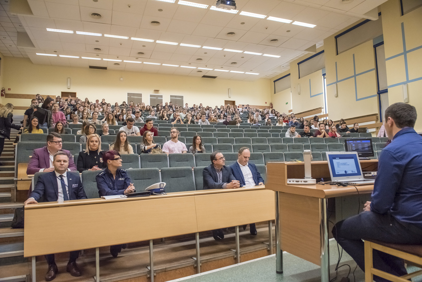 Dr hab. Marcin Jurgilewicz, prof. PRz – dziekan Wydziału Zarządzania witając wszystkich pogratulował opiekunom Koła Naukowego Ubezpieczeń – dr Annie Ostrowskiej-Dankiewicz i dr. Robertowi Dankiewiczowi oraz członkom Koła pomysłu na wykład otwarty. Tematyka ruchu drogowego, jego uczestników i skutków tegoż ruchu jest istotnym problemem, dlatego też każdy pomysł edukowania społeczeństwa jest pomysłem doskonałym – mówił M. Jurgilewicz. Dzięki takim wykładom nasi studenci mają możliwość zyskania informacji, o których być może wcześniej nie słyszeli.