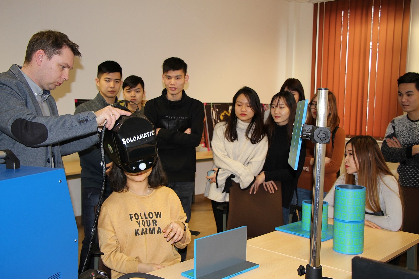 Frima Abicor-Binzel zajmuje się wirtualnym spawaniem, czyli odwzorowaniem rzeczywistych warunków, które panują podczas spawania w świecie wirtualnym. – Używanie takiego sprzętu ułatwia proces nauczania spawania, czy wyuczenia pewnych nawyków, które przenosi się na rzeczywisty sprzęt. Dzięki niemu łatwiej jest się nauczyć i pracować na rzeczywistym sprzęcie – wyjaśnia prodziekan Trytek.